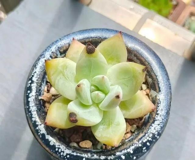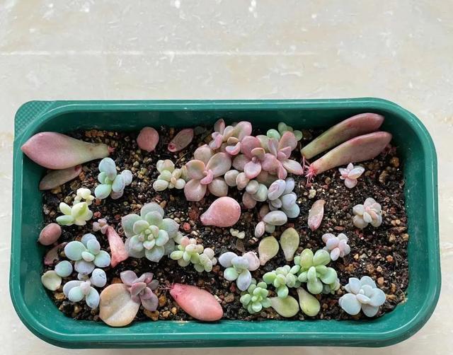 我莫得平直买多肉种,发怵这样好意思的多肉在我手上隐匿,开始我聘用买叶片来开动履行神奇的叶插,随着网上的养护学问学习,将叶片平铺在盆土上,前边几天可把我急死了,比及背面长出红点的根须来,我兴盛极了,仿佛放工开动有了期待,每天期待着它长大,每天如获至珍去查察多肉。